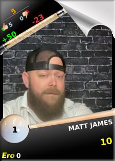 | 8 | James Gulling | Busch Light Boys | 38 | 43 | -5 | 5 | 2 | 3 | 0 | 0 | 76.00 | 1 | 7.60 | 0 | 0 | |||